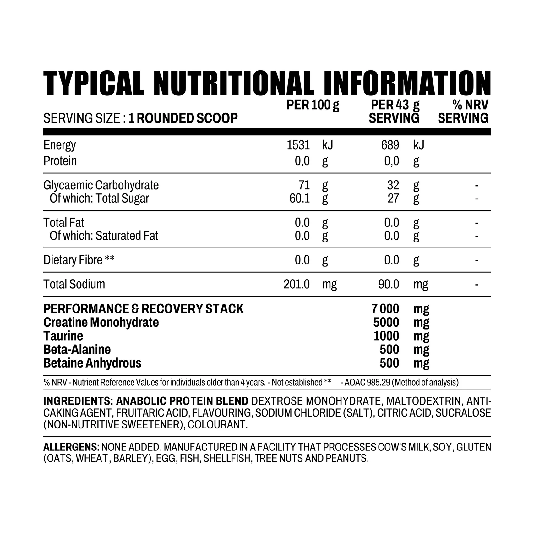 Anabolic Creatine delivers a pure, research-backed creatine blend to enhance muscle energy, increase strength, and improve overall performance. Ideal for athletes and lifters, it helps maximize power output, accelerate recovery between sets, and support lean muscle growth. Fast-absorbing and easy to mix, Anabolic Creatine ensures your muscles have the energy they need to perform at their peak, session after session. Fuel your workouts, push harder, and achieve bigger gains with every scoop
