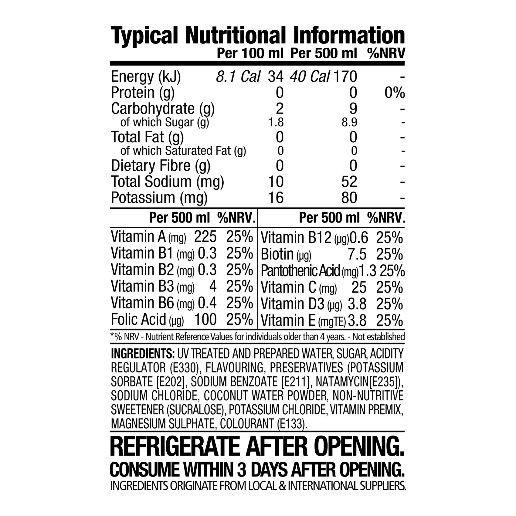 Hydrade 6 x 500ml delivers optimal hydration in a convenient multipack, perfect for training sessions, workouts, or daily active lifestyles. Packed with essential electrolytes, minerals, and fluids, Hydrade helps replace what you lose through sweat, maintain energy levels, and support overall performance. Light, refreshing, and easy to carry, this pack ensures you stay hydrated, recover faster, and stay at the top of your game, wherever your training takes you.