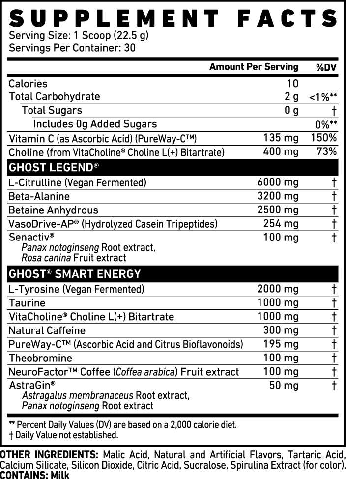 †Compared to original GHOST LEGEND® pre-workout formula.