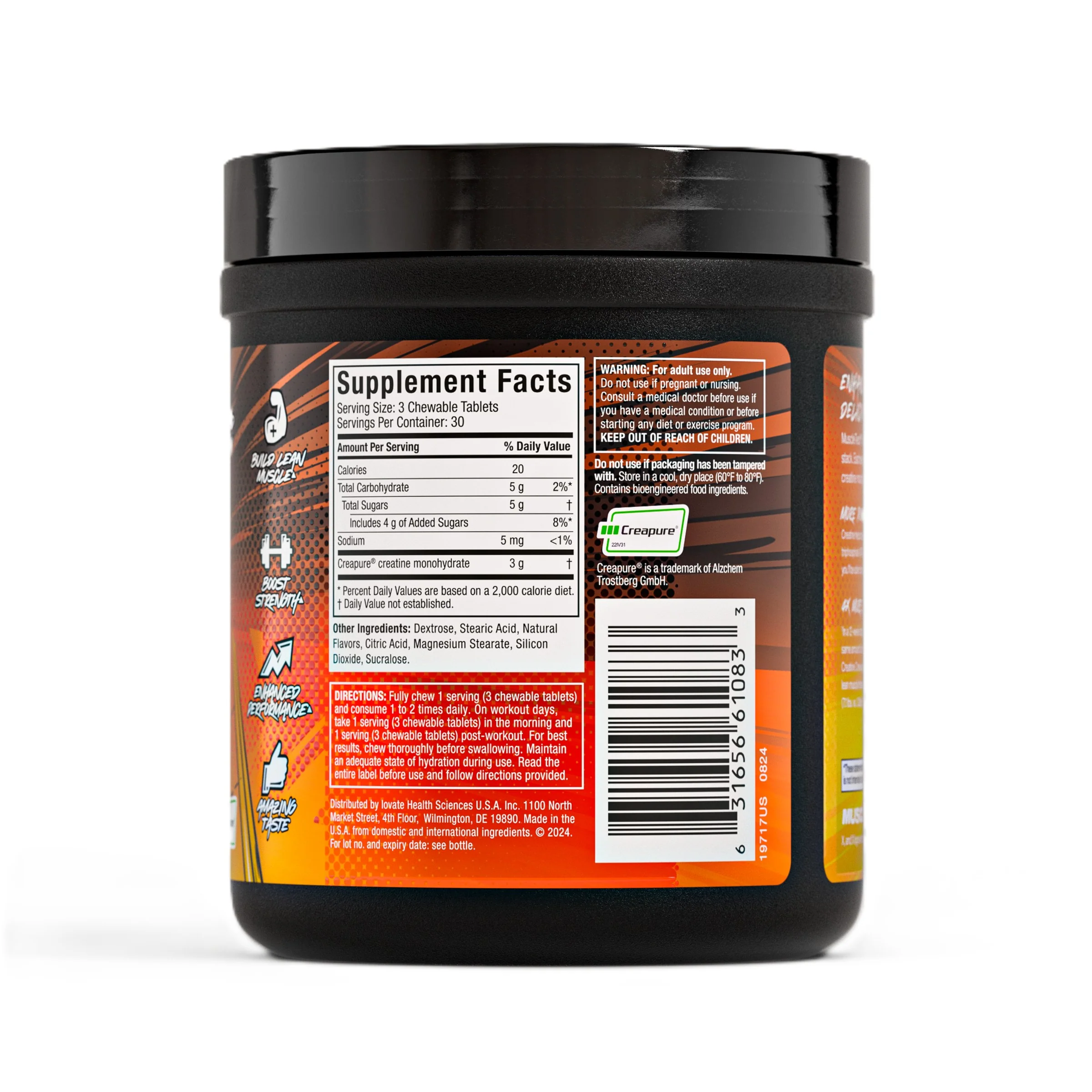 MuscleTech Creatine Chews are the perfect addition to your supplement stack. Each serving (3 chewable tablets) provides 3g of Creapure creatine monohydrate in a tasty and convenient candy-like chew!