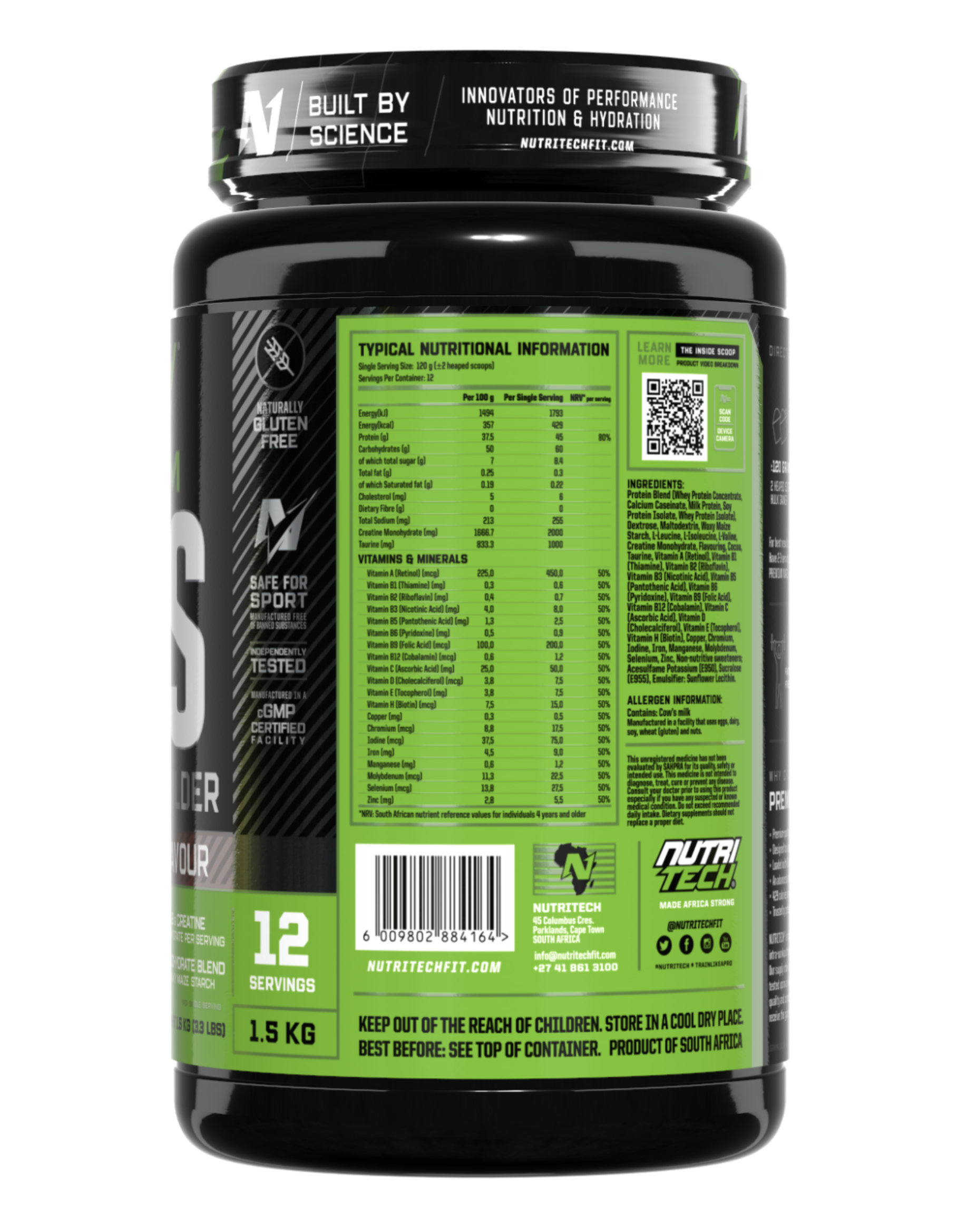 NutriTech® Premium Mass Builder is a high-calorie, nutrient-rich supplement powder designed to help individuals gain weight and build muscle mass. It contains a blend of proteins, carbohydrates, vitamins, and minerals to support muscle growth and recovery.