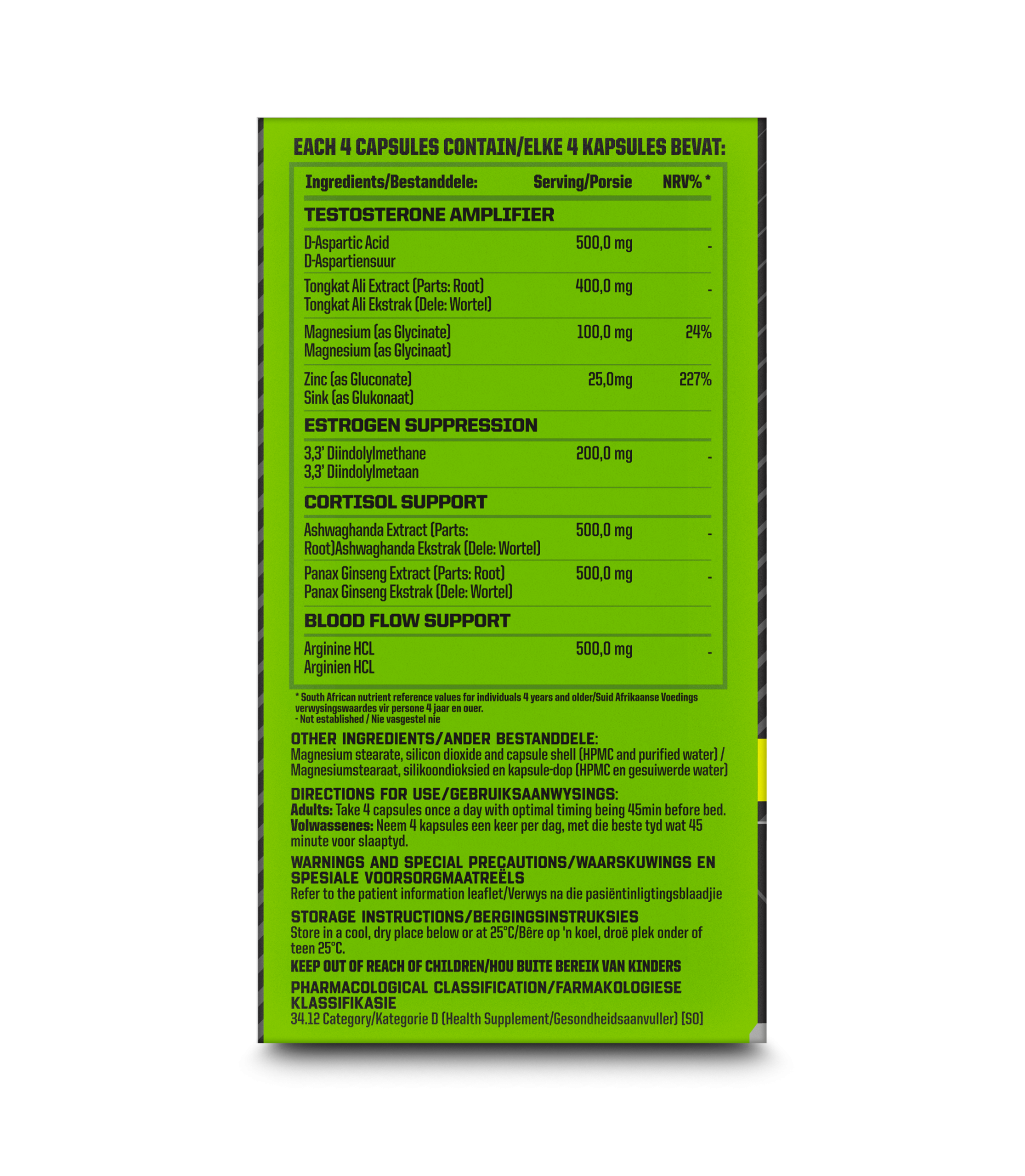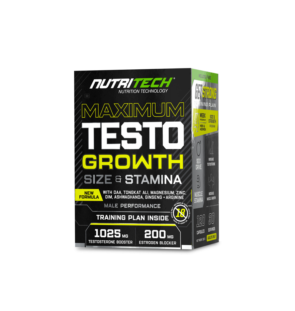 NUTRITECH TESTOGROWTH has been formulated as a premium anabolic amplifier. A single serving of TESTOGROWTH delivers 500mg of D-Aspartic Acid, 400mg of Tongkat Ali, 100mg of Magnesium, and 25mg of Zinc to boost testosterone, regulate estrogen, and elevate male performance. TESTOGROWTH is designed to provide superior testosterone support and estrogen regulation, leading to improved training performance and muscle growth, while helping you effectively manage stress, promote restful sleep, and accelerate muscle recovery.