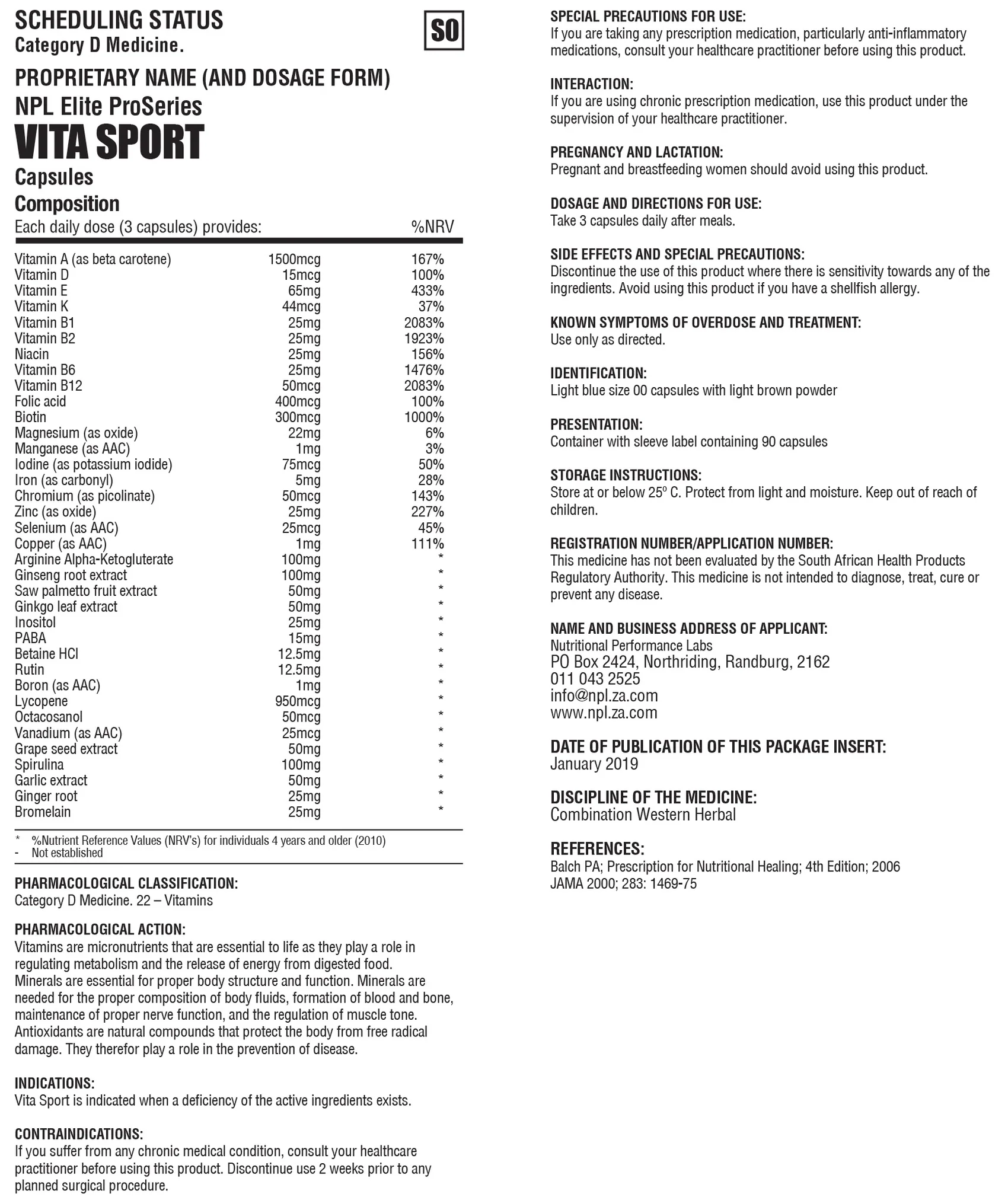 Vita Sport is a high-performance multivitamin formulated for athletes and active individuals who demand more from their daily nutrition. Packed with essential vitamins, minerals, antioxidants, and performance-enhancing nutrients, it helps increase energy, strengthen immunity, and support muscle recovery. Whether you’re training hard or living an active lifestyle, Vita Sport fills nutritional gaps and keeps your body primed, balanced, and ready to perform every day.
